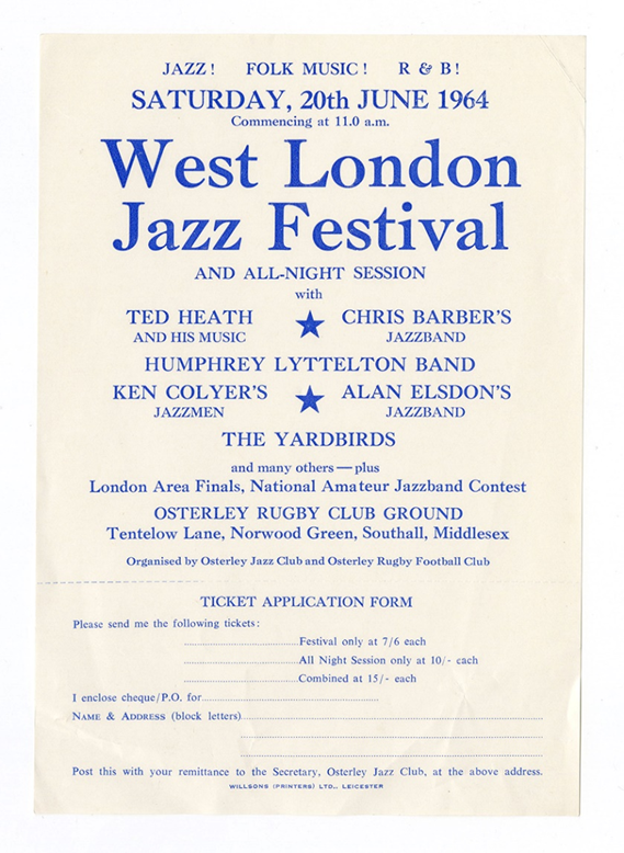 In addition, Chris Barber developed further business interests as co-director of the National Jazz Federation. He got involved in the National Jazz & Blues Festival as a director, thereby providing further assistance. While such ventures prospered with acts far removed from the jazz and blues that the Barber Band played, they all benefited from the changes in audience tastes he brought about through his bandleading. Thus, the connections with the emerging bands were not only limited to offering them a place to perform at the Marquee Club. They were also solidified through many joint performances, such as the just mentioned National Jazz & Blues Festival, which was held annually in the 1960s, or at the West London Jazz Festival in June 1964.