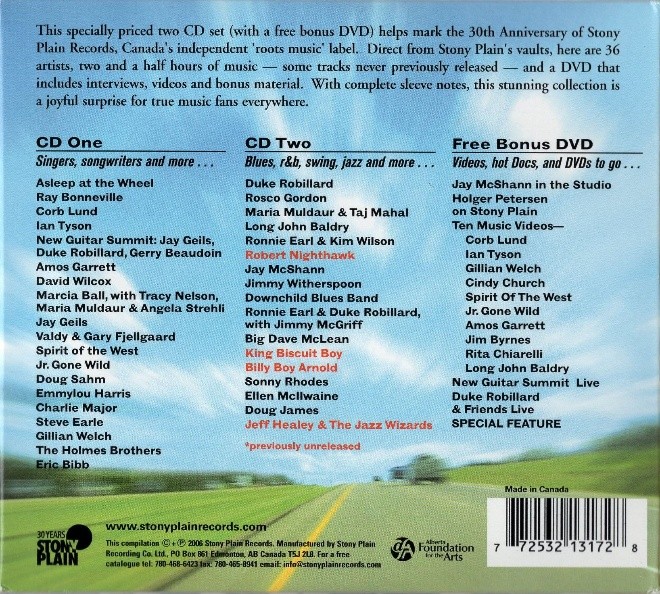 Additionally, their rendition of „Sweet Georgia Brown“, recorded on August 22, 2005, was initially included as a previously unreleased track in the compilation 30 Years of Stony Plain – Canada’s Roots, Rock, Folk, Country and Blues Label [Stony Plain Records SPCD 1317] in 2006. On this fine recording everyone got to solo, with strong runs from young violinist Drew Jurecka and saxophone player Chris Plock.